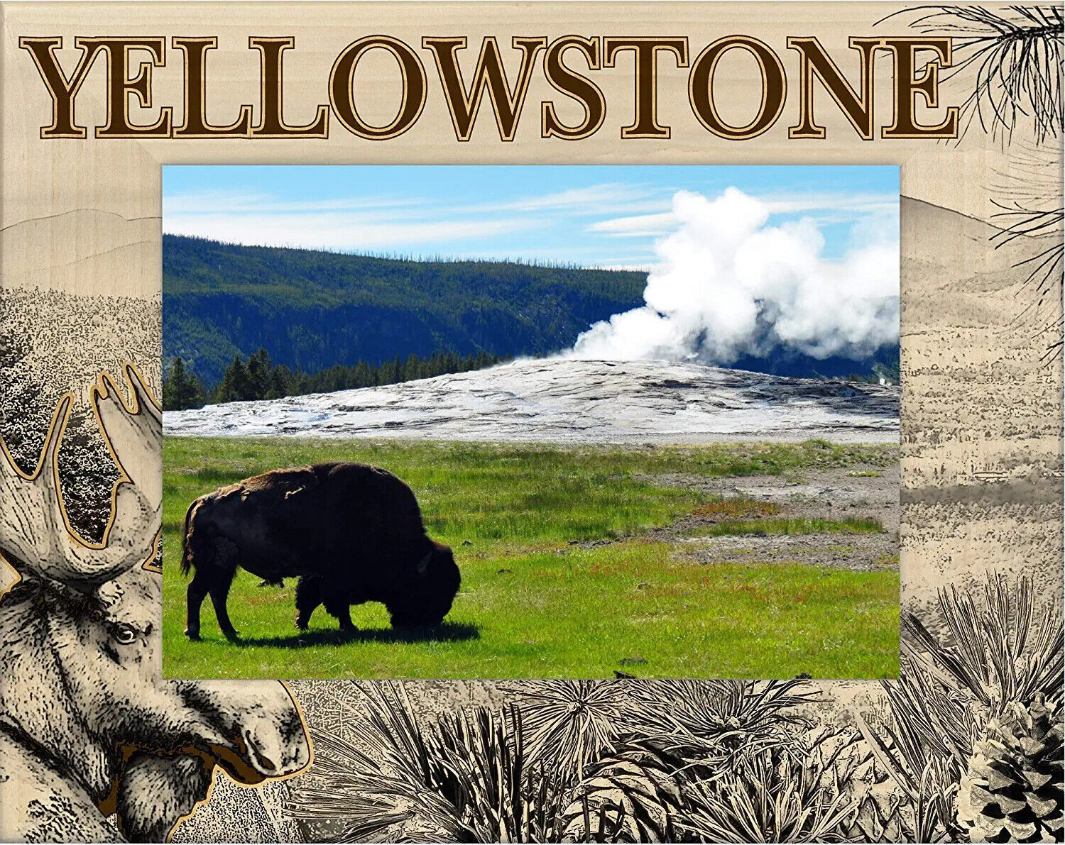 Yellowstone National Park with Moose Laser Engraved Wood Picture Frame Landscape (5 x 7)