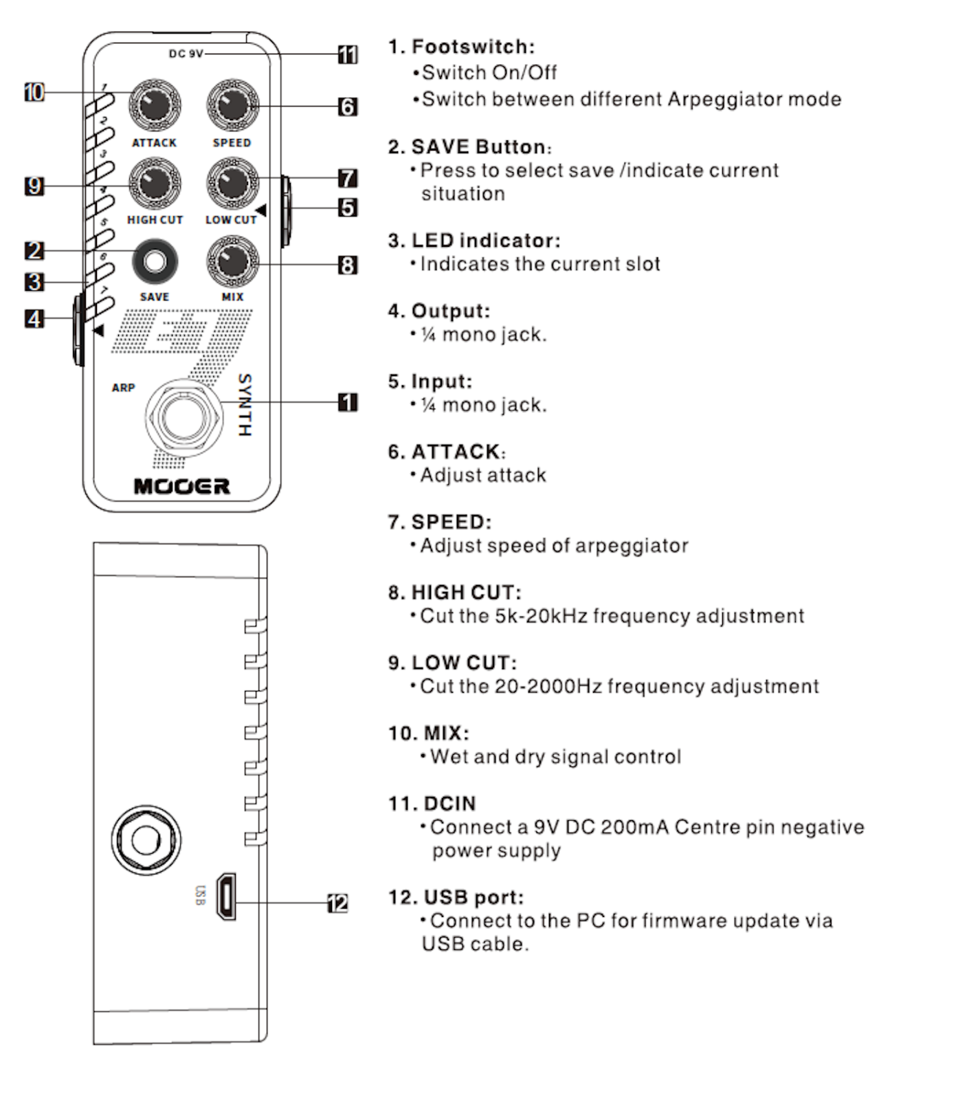 Power supply: 9V DC transformer (internal negative external), MOOER Power supply is recommended