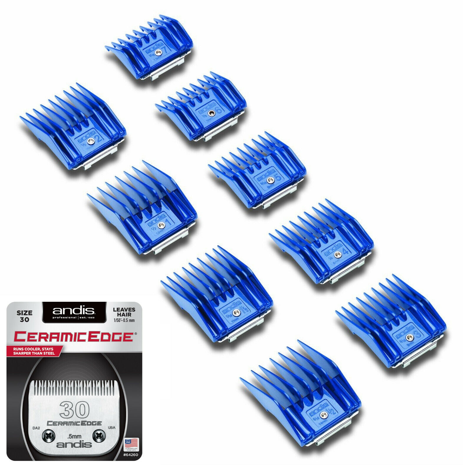 ANDIS 9pc GUIDE ATTACHMENT COMB&CeramicEdge 30 BLADE*Fit Many Oster,Wahl Clipper