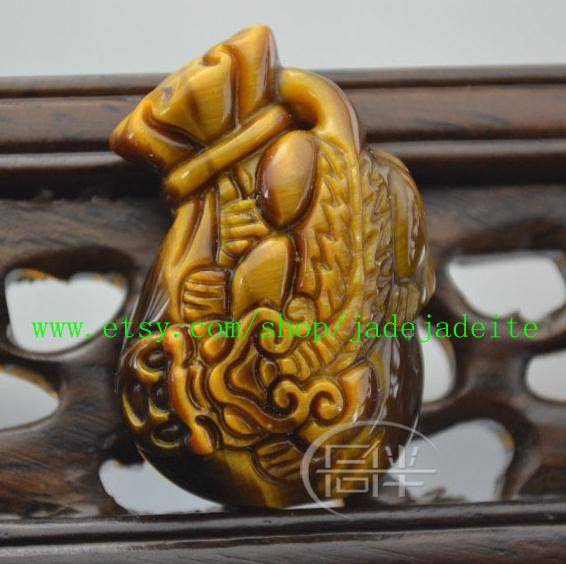 Free Shipping - good luck Natural Yellow Tiger eye stone carved Pi Yao Wallet /