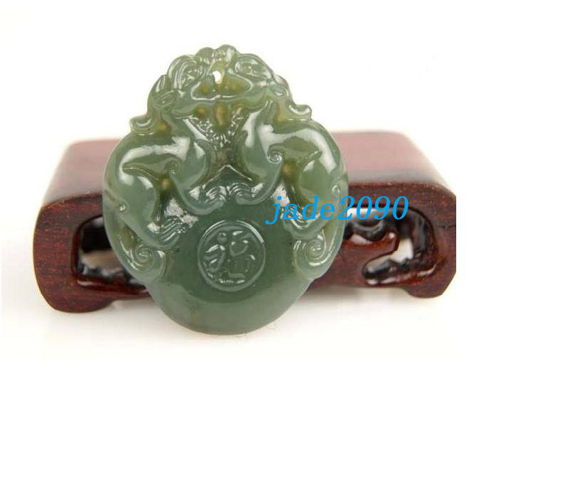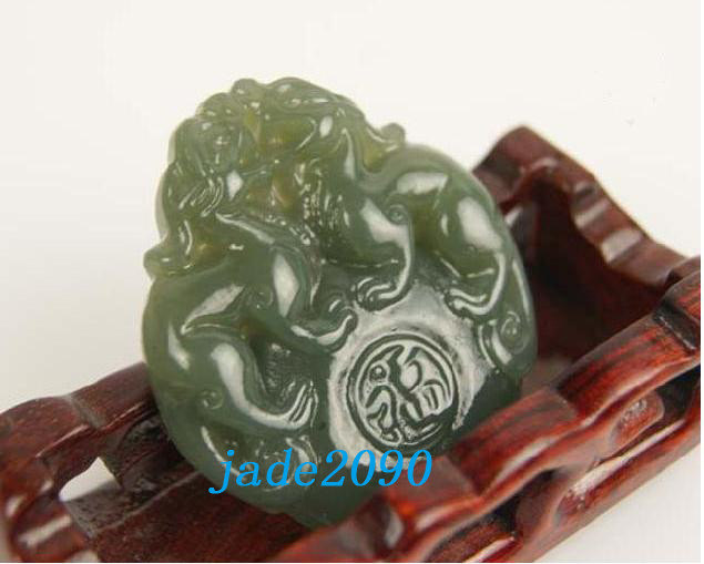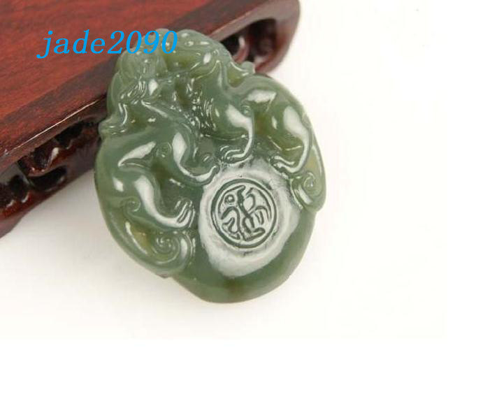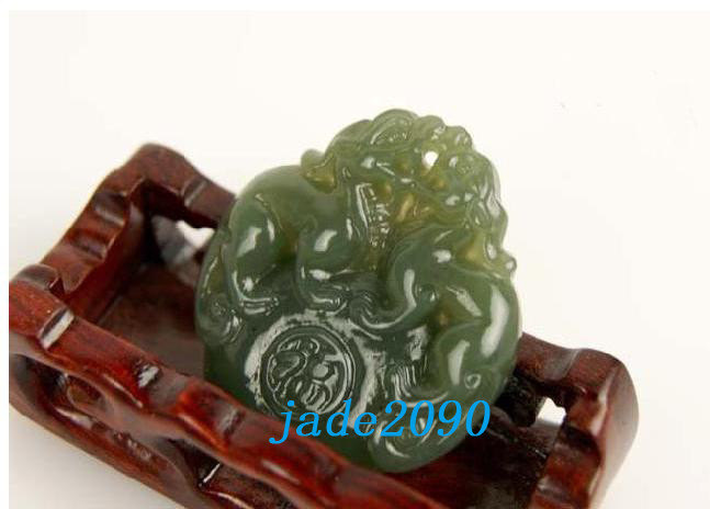 Free Shipping - Hand-carved Genuine Natural Green jade Carved '' Pi Yao '' Amule