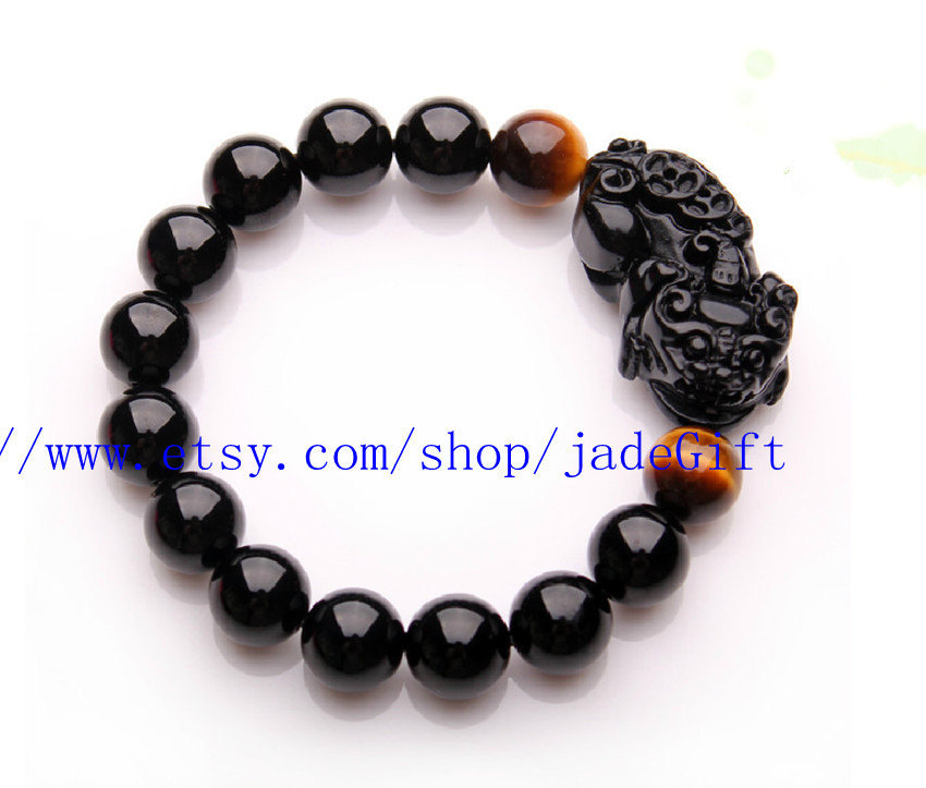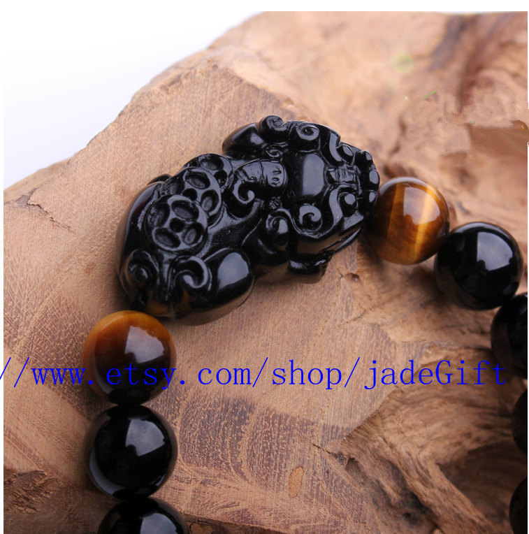 Free Shipping - Handcrafted Grade AAA Natural black jade beads '' PI YAO '' ch