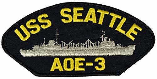 USS SEATTLE AOE-3 Patch. Veteran Owned Business. PATCH - Multi-colored Veteran Owned Business. 6" wide by 3" tall PATCH. Quality Embroidered USS SEATTLE AOE-3 Patch. Veteran Owned Business. PATCH. Color. Durable with Iron On Backing. Great Detail and Stitching for a Jacket or Vest. Great Gift for ANYONE! HatnPatch Is THE Veteran Owned and Operated Family Business - 2 Generations of Retired Marines - We Ship Your Order Within 24 Hours And Usually The SAME DAY!