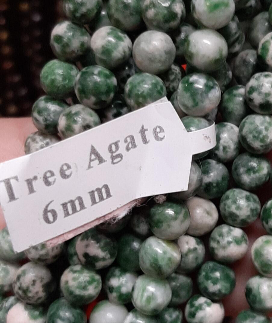 This item is 1 strand of approximately 60 6mm Tree Agate Round Beads temporarily strung.
