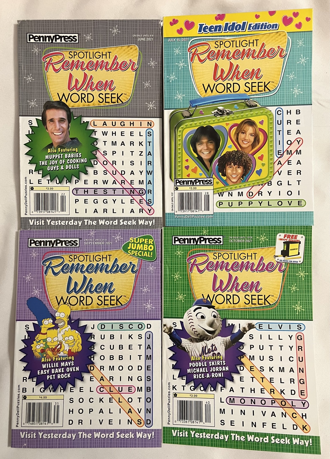 Lot of 4 Penny Press Spotlight Remember When Word Seek Puzzles Books 2021 Lot#2: Great book of word seeks featuring your favorite celebrities and historical moments and items.