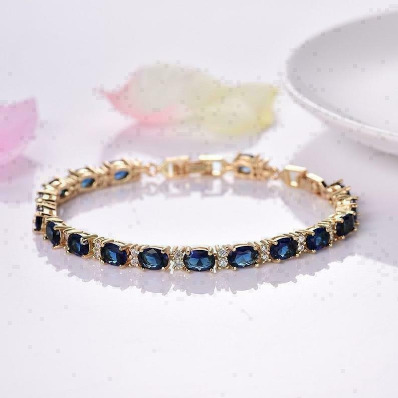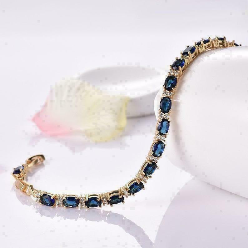 12Ct Oval CZ Sapphire Charm Bracelet 14K Yellow Gold Plated-925 Silver 7"