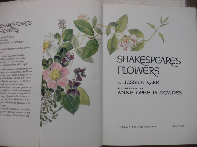 Perdita welcomes guests with rosemary and rue for grace and remembrance; Ariel hides in a cowslip’s bell. There is magic in the "little western flower" Oberon uses to cast a spell on Titania, and tragedy in Ophelia’s garland and Lear’s crown of weeds. In the witches’ brews and love potions, as symbols of gallantry or faith, as seasoning in homely English kitchens, or as badges for the wars of kings, flowers and herbs were an intimate part of life in Shakespeare’s day. Their legends add color and fragrance to his plays and songs. "Shakespeare’s Flowers combines fascinating lore and glorious paintings by Anne Ophelia Dowden, to recreate the gardens and meadows of Elizabethan England.
