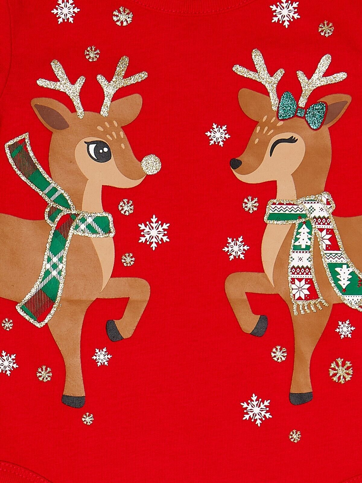 Holiday Time Baby Girls 'Reindeer' Long Sleeve Christmas Bodysuit Red Size 3-6M