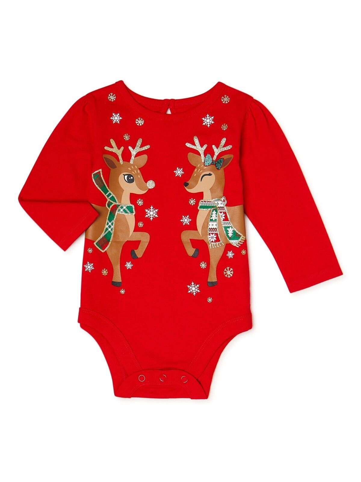 Holiday Time Baby Girls 'Reindeer' Long Sleeve Christmas Bodysuit Red Size 0-3M