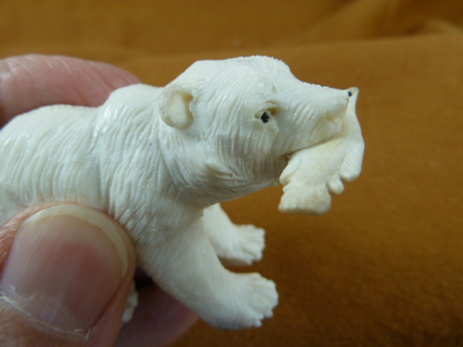 (bear-w102) grizzly bear w/ fish of shed ANTLER figurine Bali detailed carving