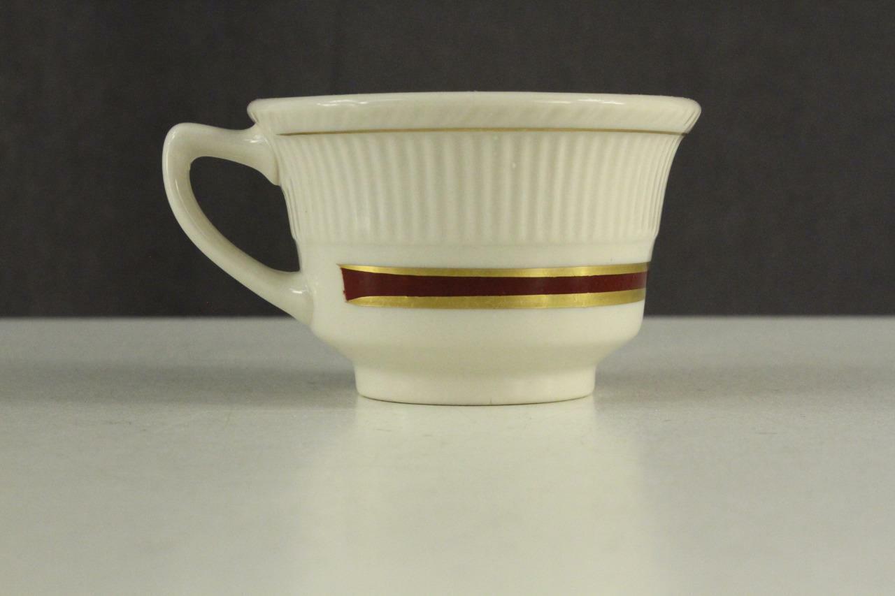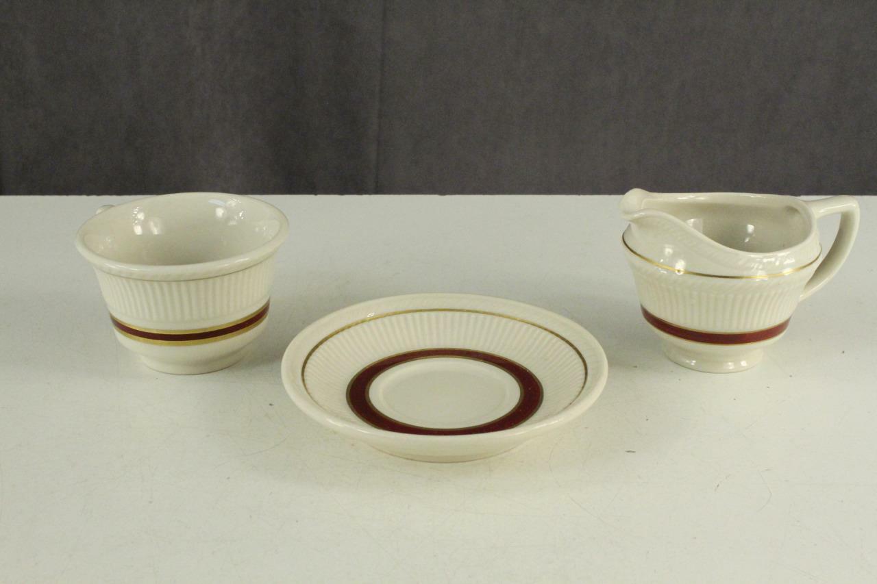 Title: Vintage Restaurant China 3PC Lot Maroon Gold Stripe Shenango Cup Saucer Creamer