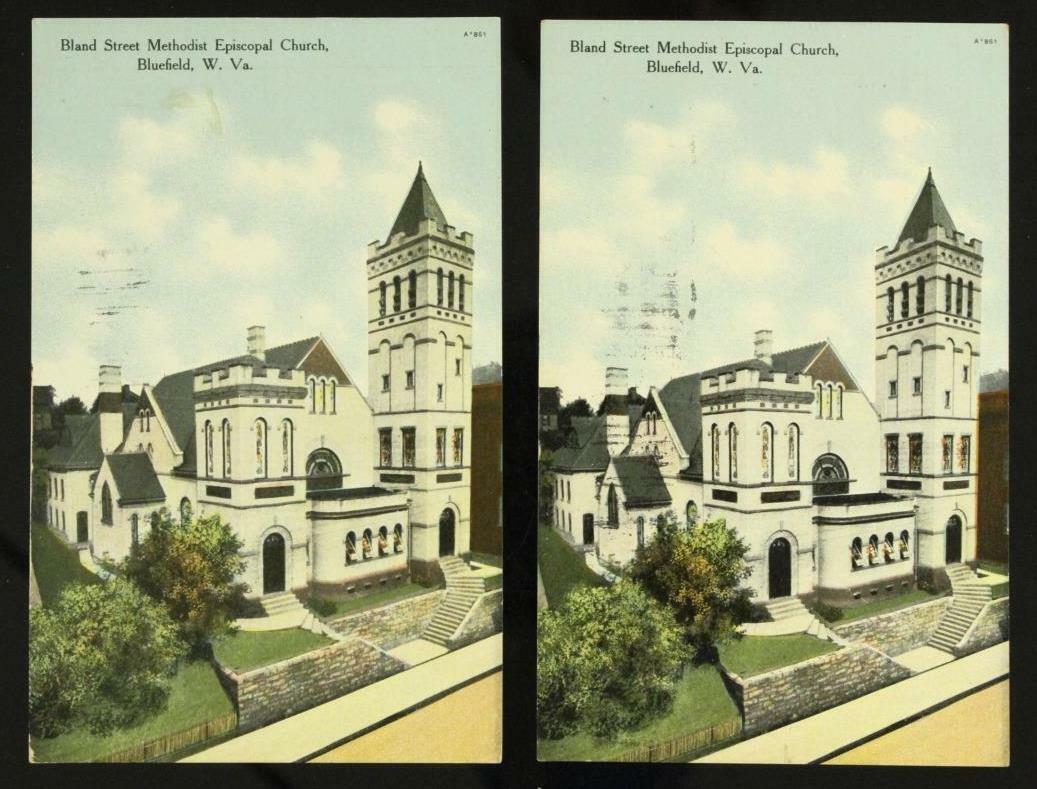 Vintage Paper Postcard Bluefield VA 2PC Bland Street Methodist Episcopal Church. 1910 Cancels.