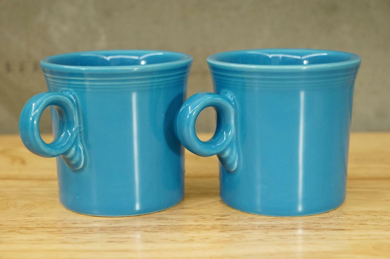 MODERN Pottery Homer Laughlin Fiesta Peacock Blue Loop Handle Coffee Mugs - measures 3.5" tall. Very Good condition, no chips or cracks. No smoke or pet odor.