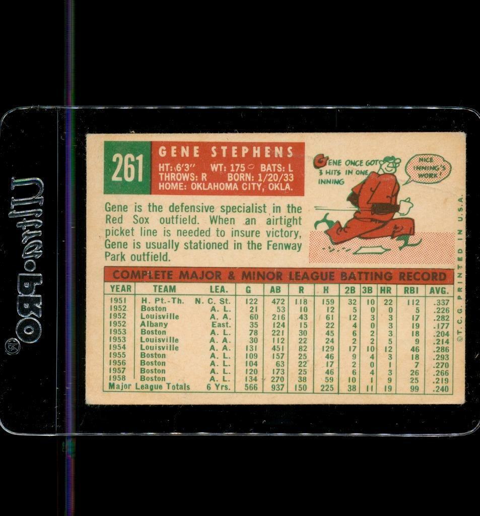 Vintage BASEBALL Trading Card TOPPS 1959 #261 GENE STEPHENS Boston Red Sox WB. Light corner and edge wear noted. Light creasing noted bottom two corners.