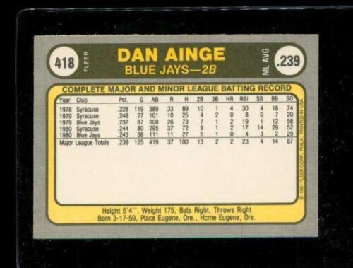 Vintage 1981 FLEER Baseball Trading Card #418 DAN AINGE Toronto Blue Jays