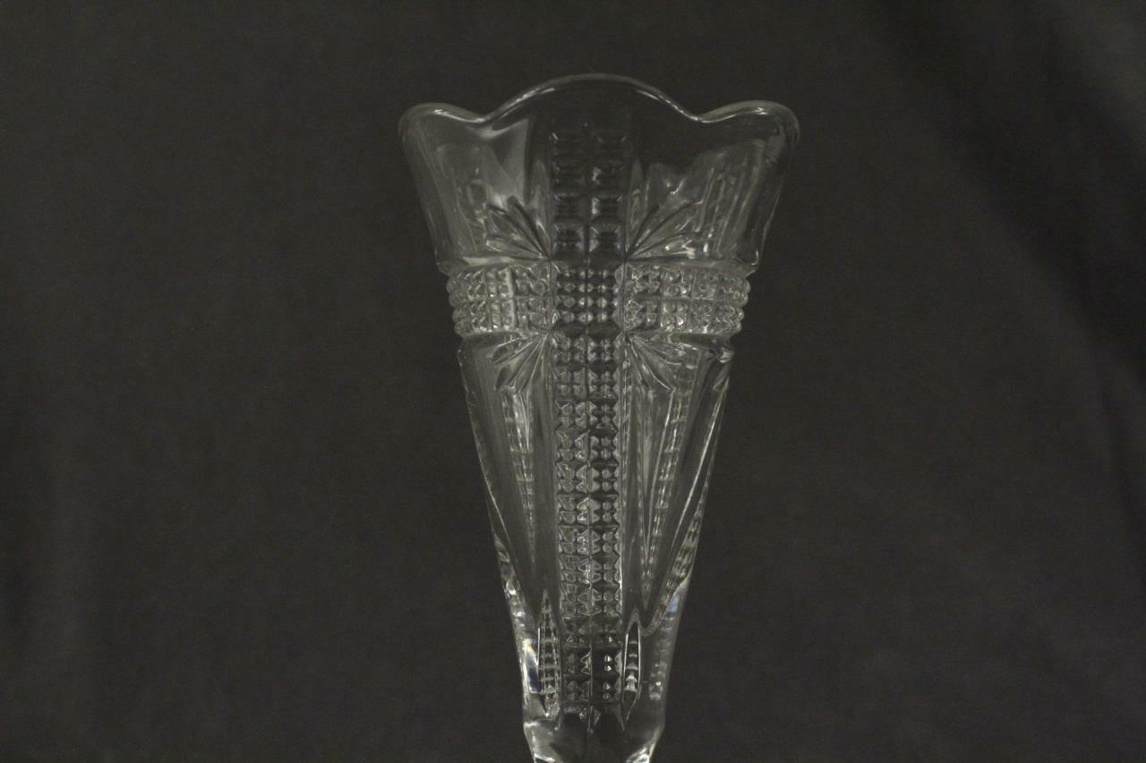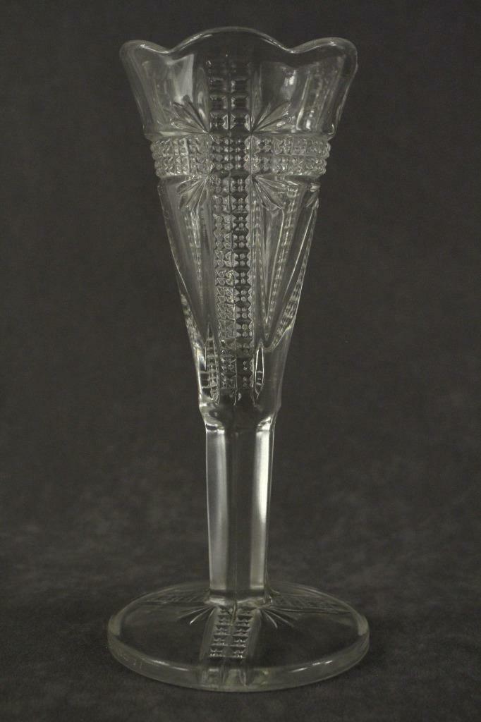 Vintage EAPG Pressed Glass 3 Part Mold Footed Flared Flower Vase 8.25" Banded