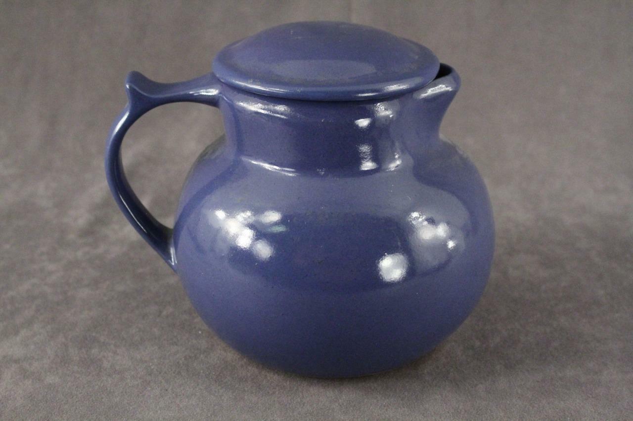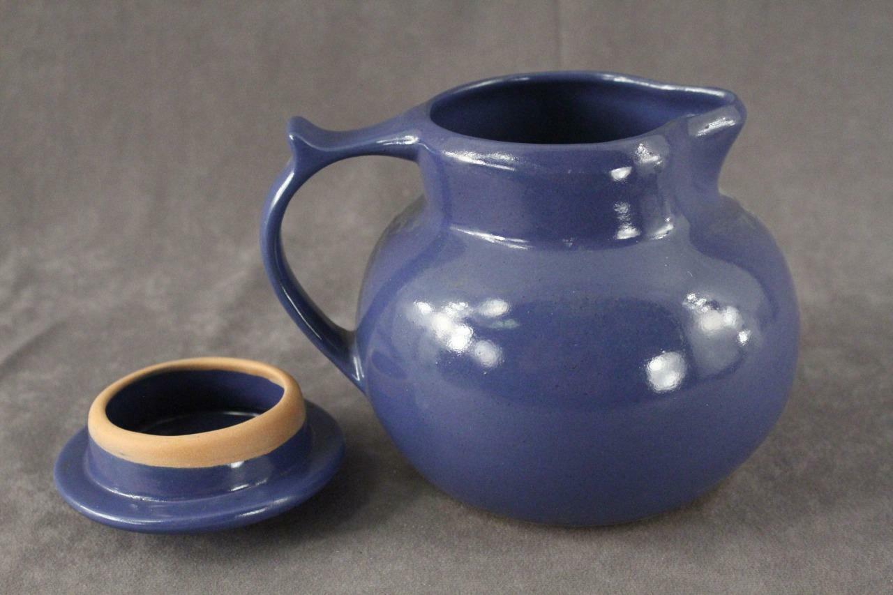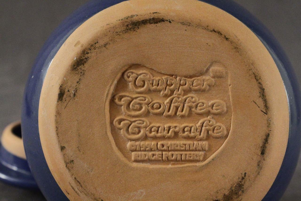 MODERN Christian Ridge Redware Art Pottery CUPPER COFFEE POT CARAFE Blue. Signed on the base. Measures 6" tall. No smoke or pet odor. No chips or cracks. Excellent condition. Unique design.