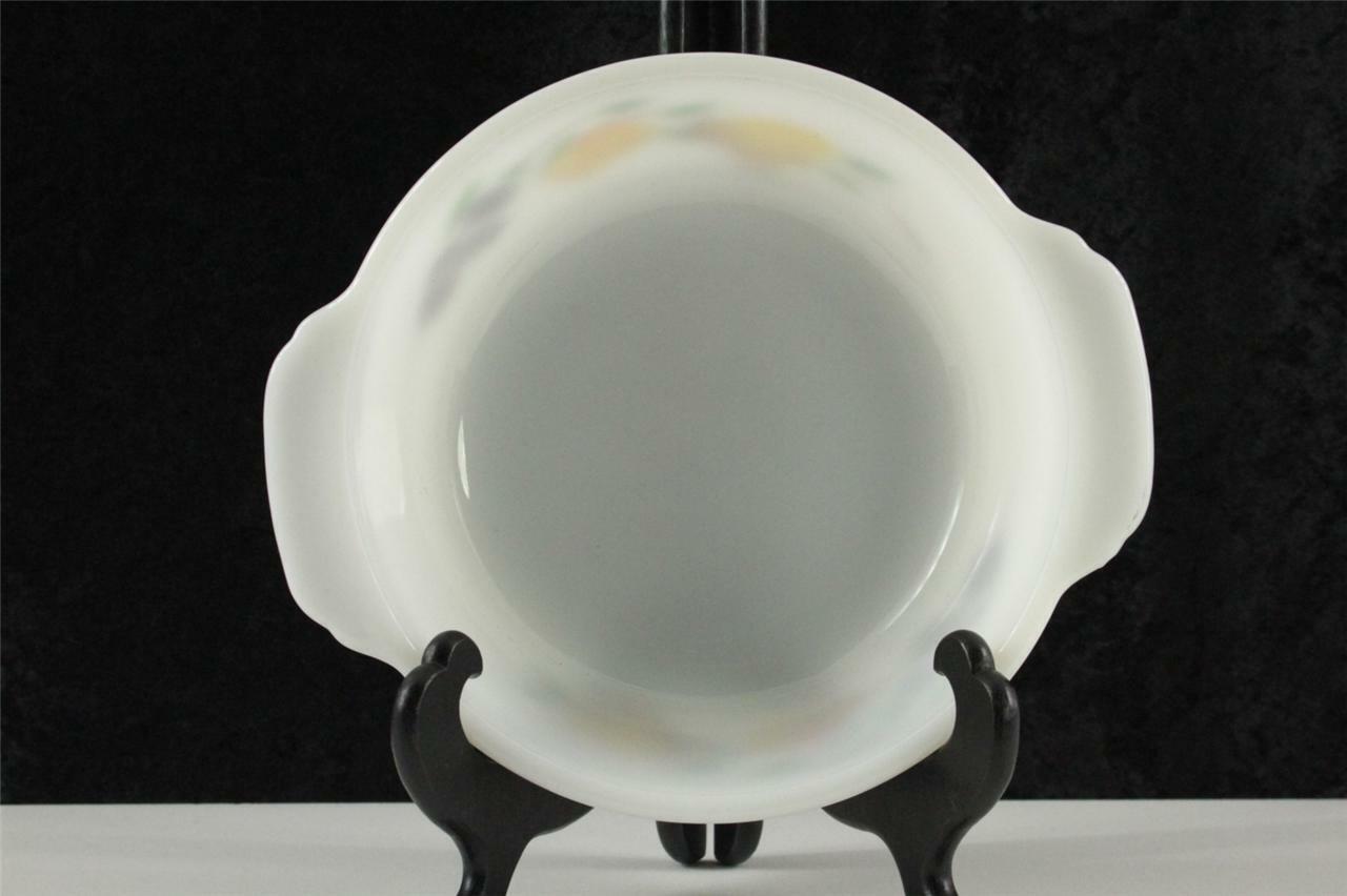Color: milk glass, gay fad hand painted pear and grape fruits pattern