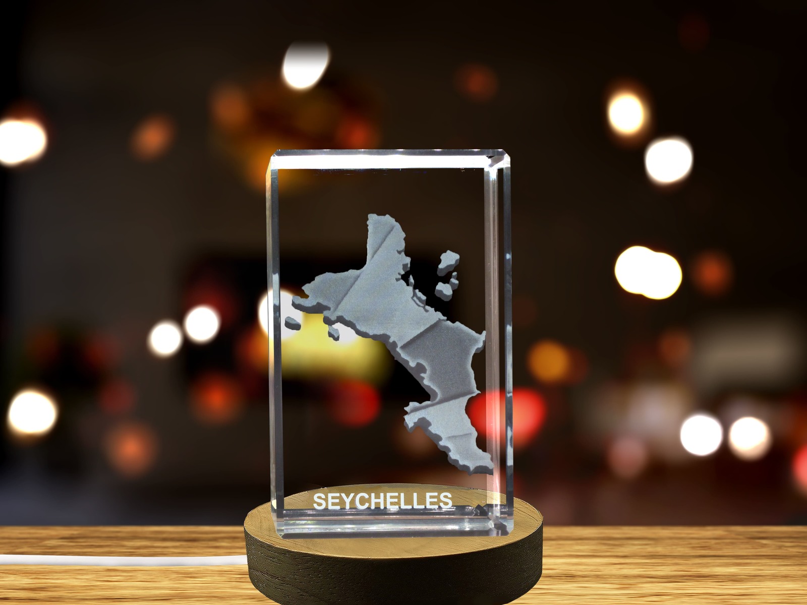 LED Base included | Seychelles 3D Engraved Crystal 3D Engraved Crystal Keepsake