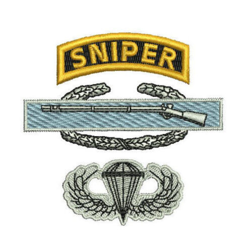 CIB Combat Infantry Badge with Jump Wings and Sniper Tab Embroidered Polo Shirt