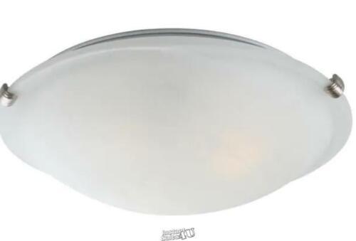 This indoor brushed nickel semi-flush mount ceiling fixture features a white alabaster glass bowl/saucer shade. Thick and durable alabaster glass diffuses light evenly for a pleasant, uniform glow and features unique, beautiful swirls. Filtered light subtly accentuates swirls, resulting in charming wispy highlights. Feel confident in your choice of combined contemporary and classic elegance. Delight in transitional design that complements surroundings and decor with the best of both modern and traditional elements. Clean, minimal design blends in seamlessly with surroundings and existing decor. Perfect complement to stainless-steel appliances, kitchens, living rooms, bedrooms, studies, lobbies, restaurants and many other indoor areas. Suitable for dry locations only. Beautifully finished with flawless nickel brushed to perfect symmetry by skilled craftsmen. Feel at ease with brushed nickel's lasting quality and stunning appearance. High-quality nickel provides phenomenal durability and an attractive gleam. Hard surface provides top quality protection against scratches. Easy maintenance simply clean and polish to achieve an even more lustrous shine. Outer lacquer finish provides an attractive sheen and additional layer of protection. Stunning white alabaster glass bowl/saucer shade with beautiful swirls Perfect complement to stainless-steel appliances, kitchens, living rooms, bedrooms, studies, lobbies, restaurants and many other indoor areas High-quality, stunning brushed nickel extreme durability and top quality protection against scratches Outer lacquer finish provides attractive sheen and additional protection layer Transitional, contemporary or traditional design Clean, minimal design blends in seamlessly with surroundings and existing decor Medium base (E26) compatible with incandescent, halogen, self-ballast-fluorescent and LED light bulbs Compatible with all dimmers Suitable for dry locations only Heat-resistant components withstand up to 60-Watt 3-light fixture (bulbs not included) Individually inspected for quality assurance