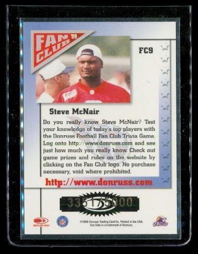 Vintage 1999 DONRUSS FAN CLUB Football Card FC9 STEVE MCNAIR Tennessee Titans