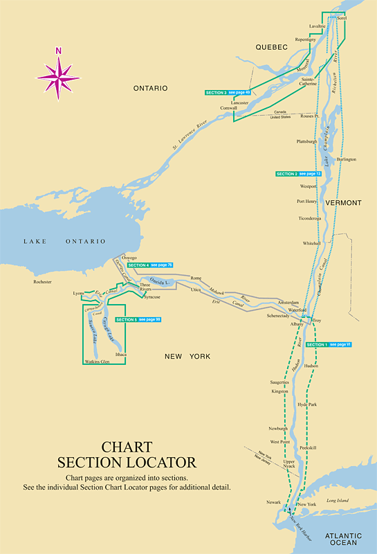 Includes: New York Harbor to Sorel (includes Lake Champlain). St. Lawrence River: Sorel to Cornwall.