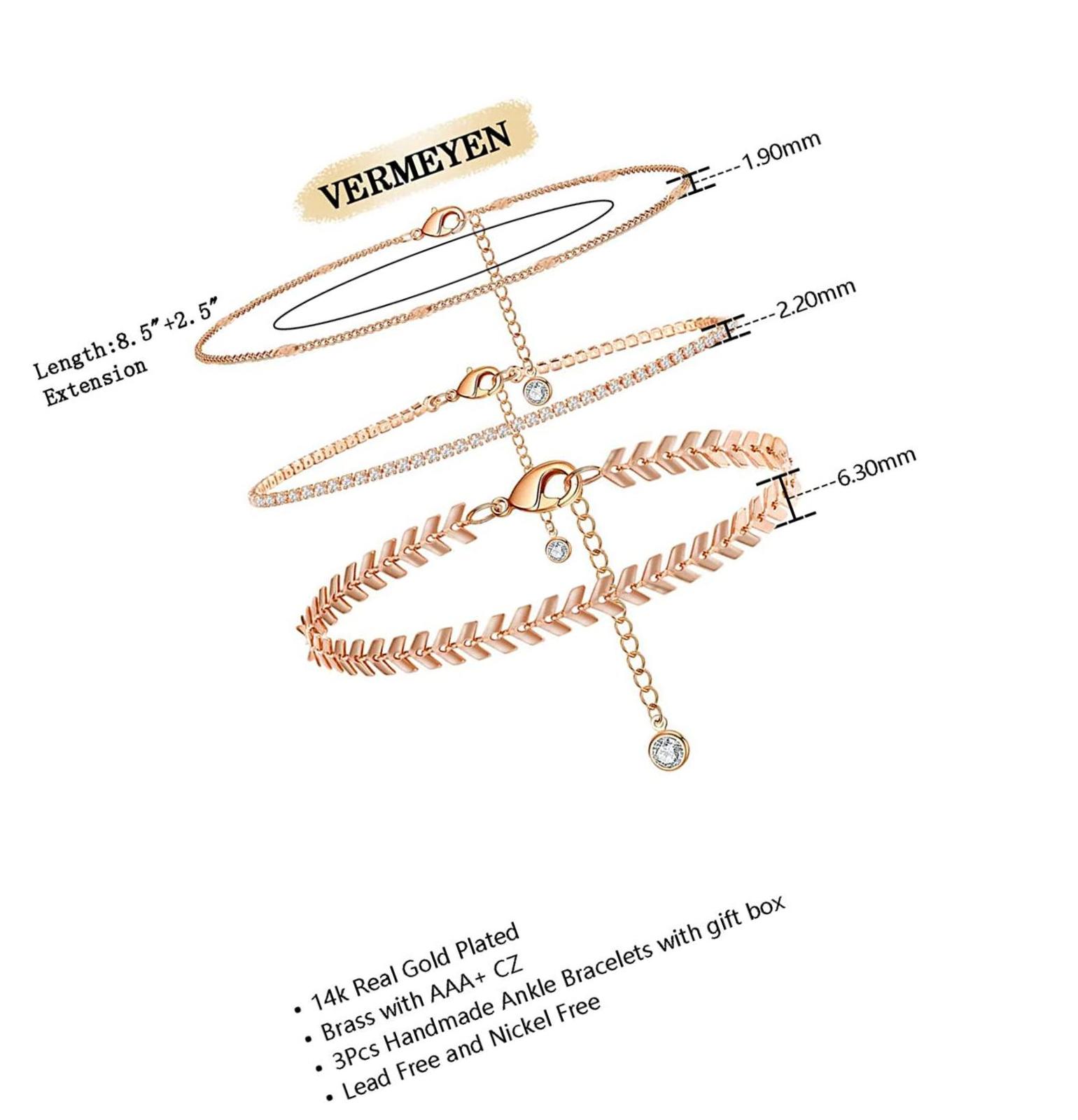Gold Ankle Bracelets for Women 14k Gold Plated Anklet Silver