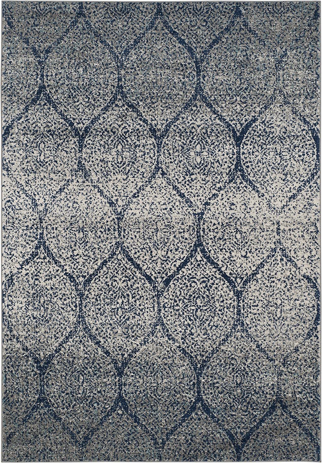 Safavieh Madison Collection Mad604G Glam Ogee Trellis Distressed, Navy/Silver.