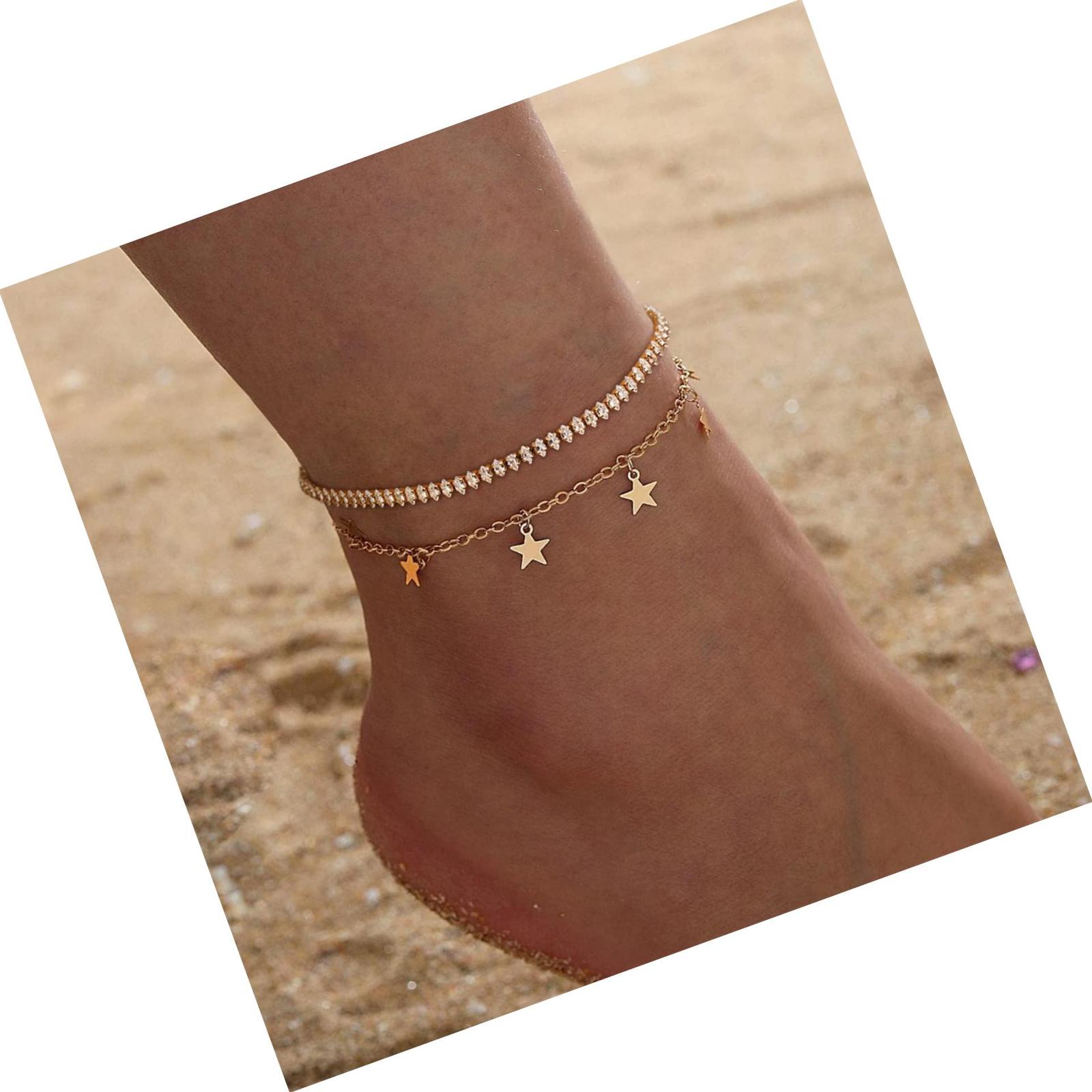 Charm Anklet,14K Gold Plated Boho Cute