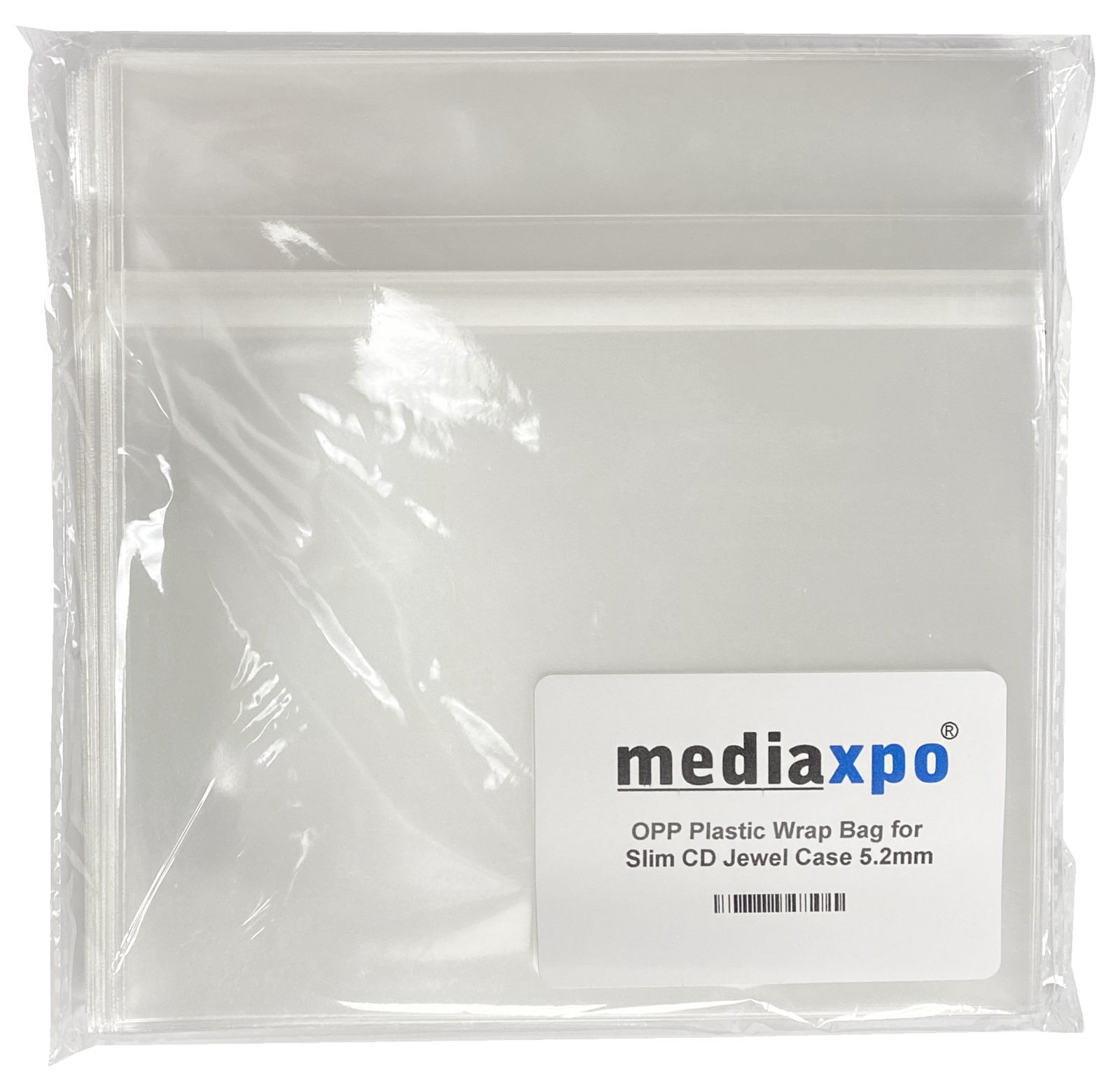 Specification: Category: OPP Plastic Bags Color: Clear Thickness: 5.2mm Type: CD Jewel Cases Material: OPP Features: Fits snugly around Slim CD Jewel Case 52mm The wrap is self adhesive Requires no special equipment Adhesive strip in the body