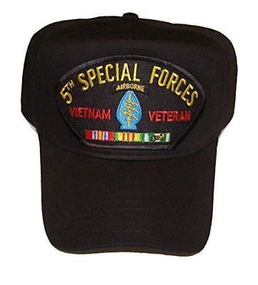 5TH SPECIAL FORCES VIETNAM VETERAN HAT with ribbons and 5th SF crest cap - Black Golf Style Hat. - Size 1 Fits All Veteran Owned and Operated Business