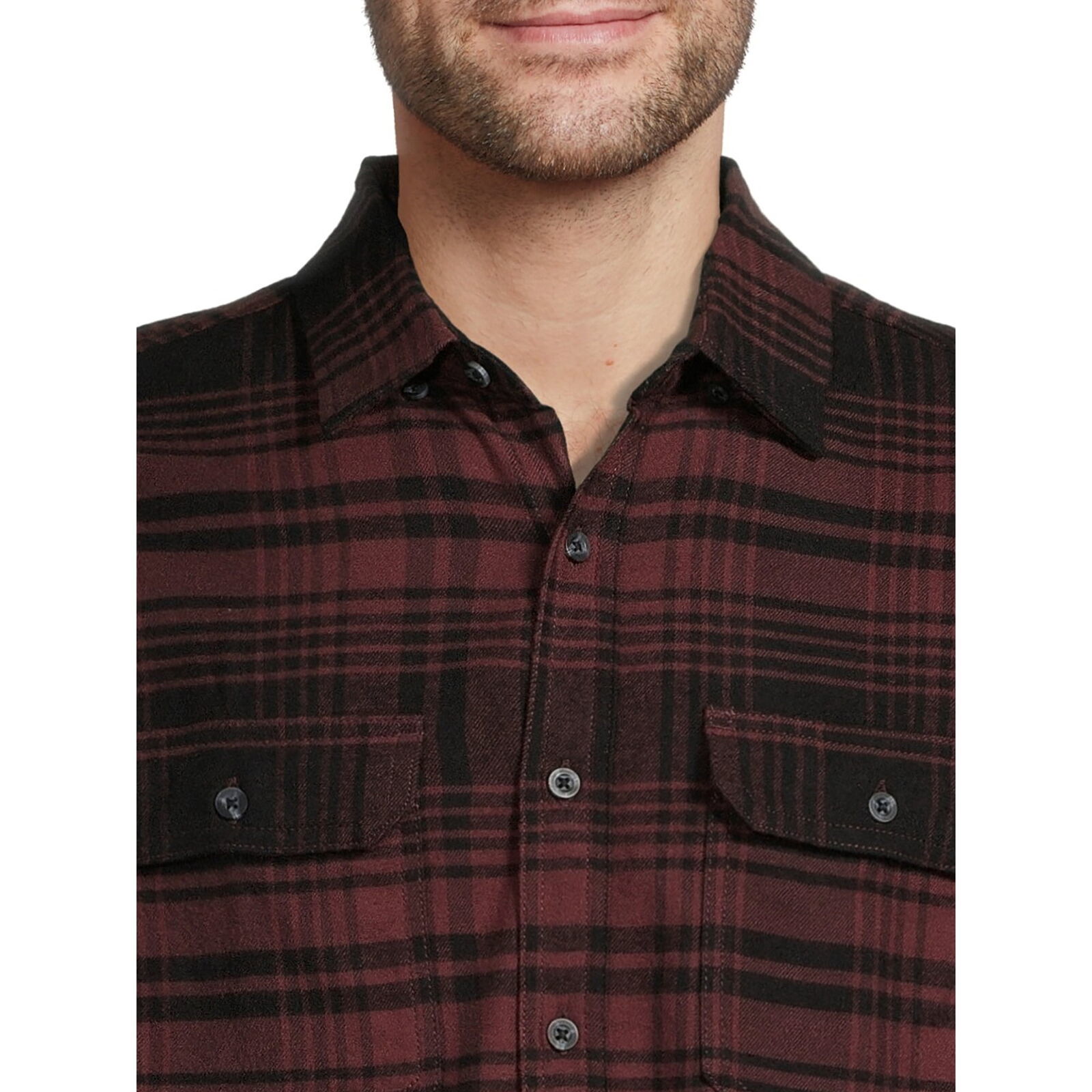 George Men's Long Sleeve Flannel Shirt Size S (34-36) Color Deep Chianti/Black