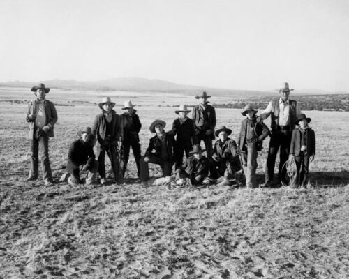 The Cowboys John Wayne poses on the range with his young cowboys Poster 4x6 phot