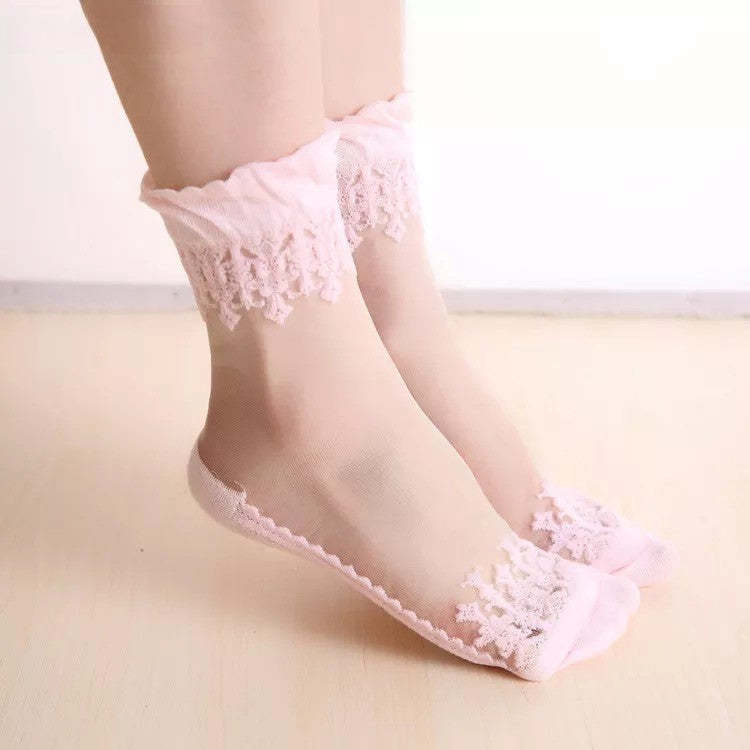 Anysox 5 Pairs Size 5-9 Fashion Socks Summer Lace Embroidery Breathable Silk