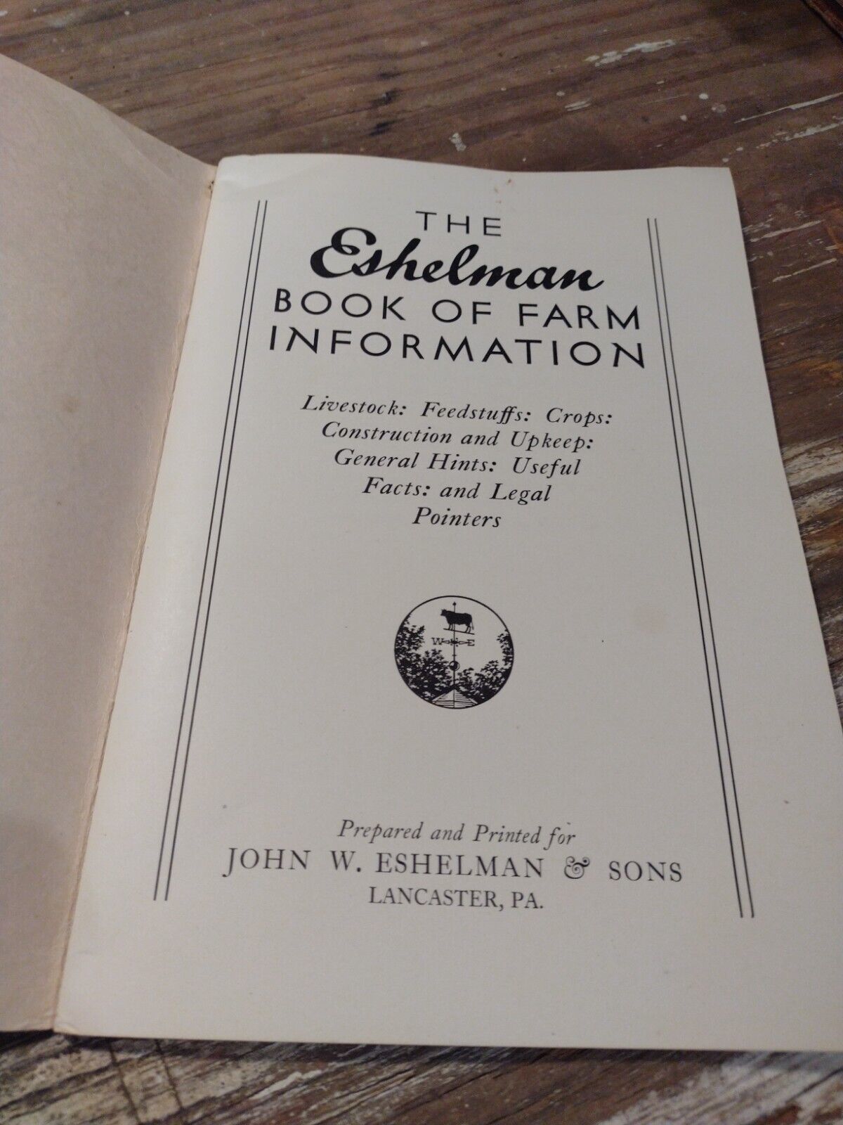 1933 ESHELMAN BOOK OF FARM INFORMATION Breeds Dairy Chickens Crops Photos.
