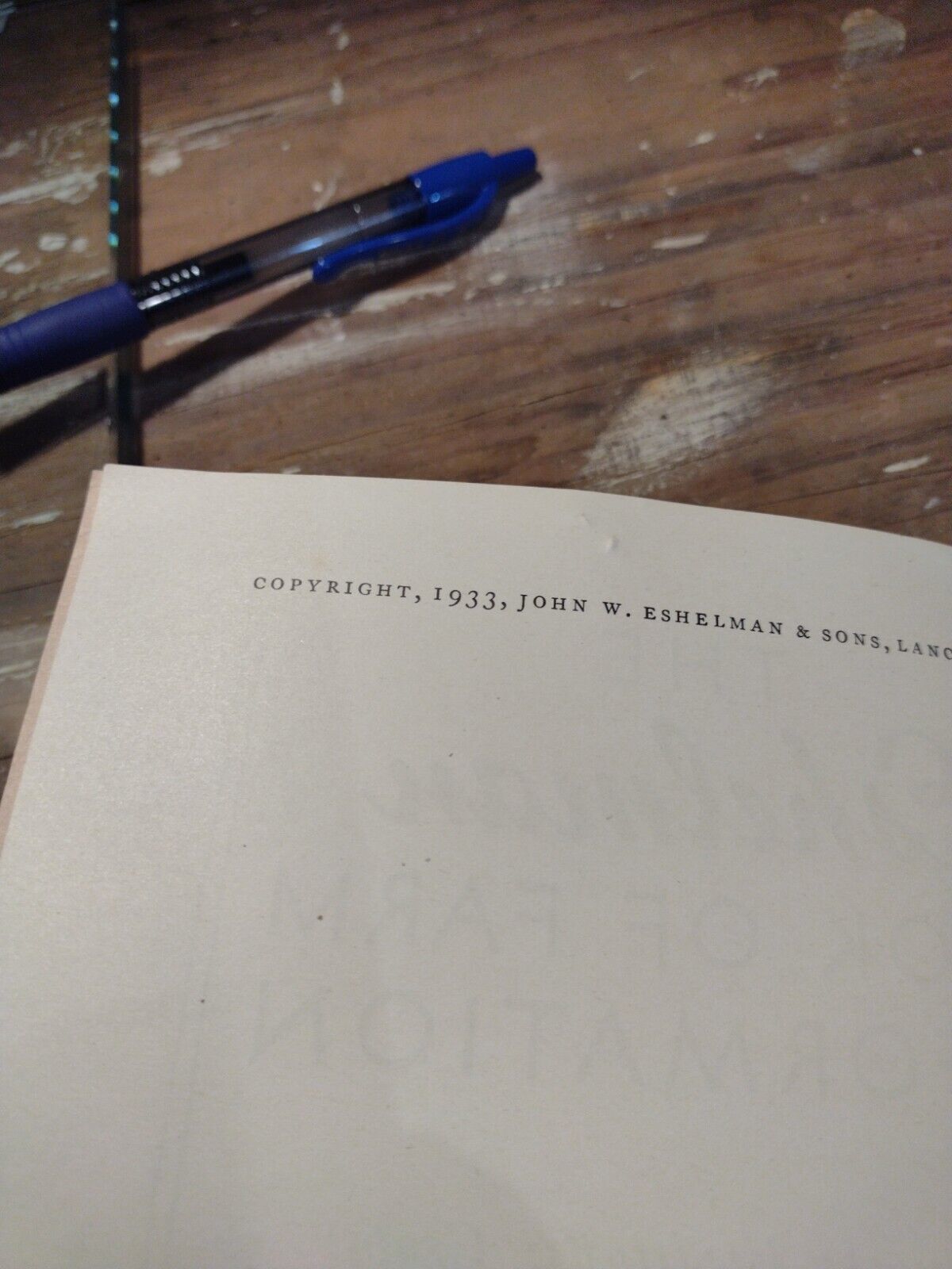 1933 ESHELMAN BOOK OF FARM INFORMATION Breeds Dairy Chickens Crops Photos