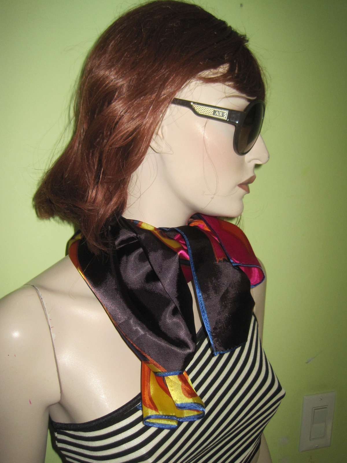 Vintage WOMEN'S Ladies 70s Tacky Colorful Tropical Elephant Fashion SCARF Wrap