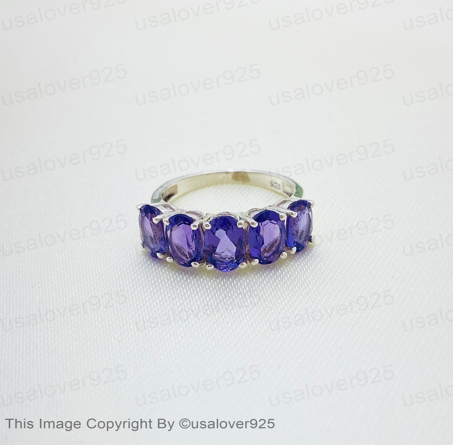 Purple Amethyst Oval Gemstone Sterling Silver Modern Women Band Ring Jewelry