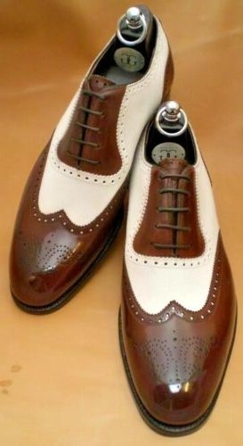 Two Tone Handmade Leather Brown Patina Wingtips Lace up Dress Shoes For Men