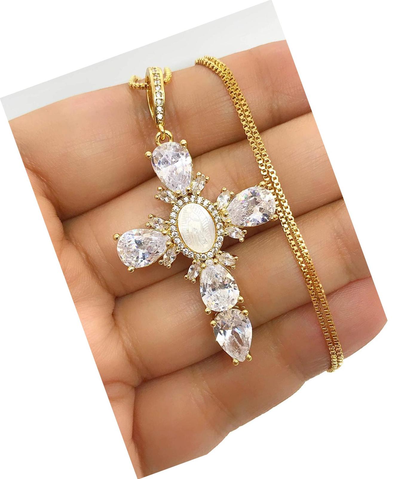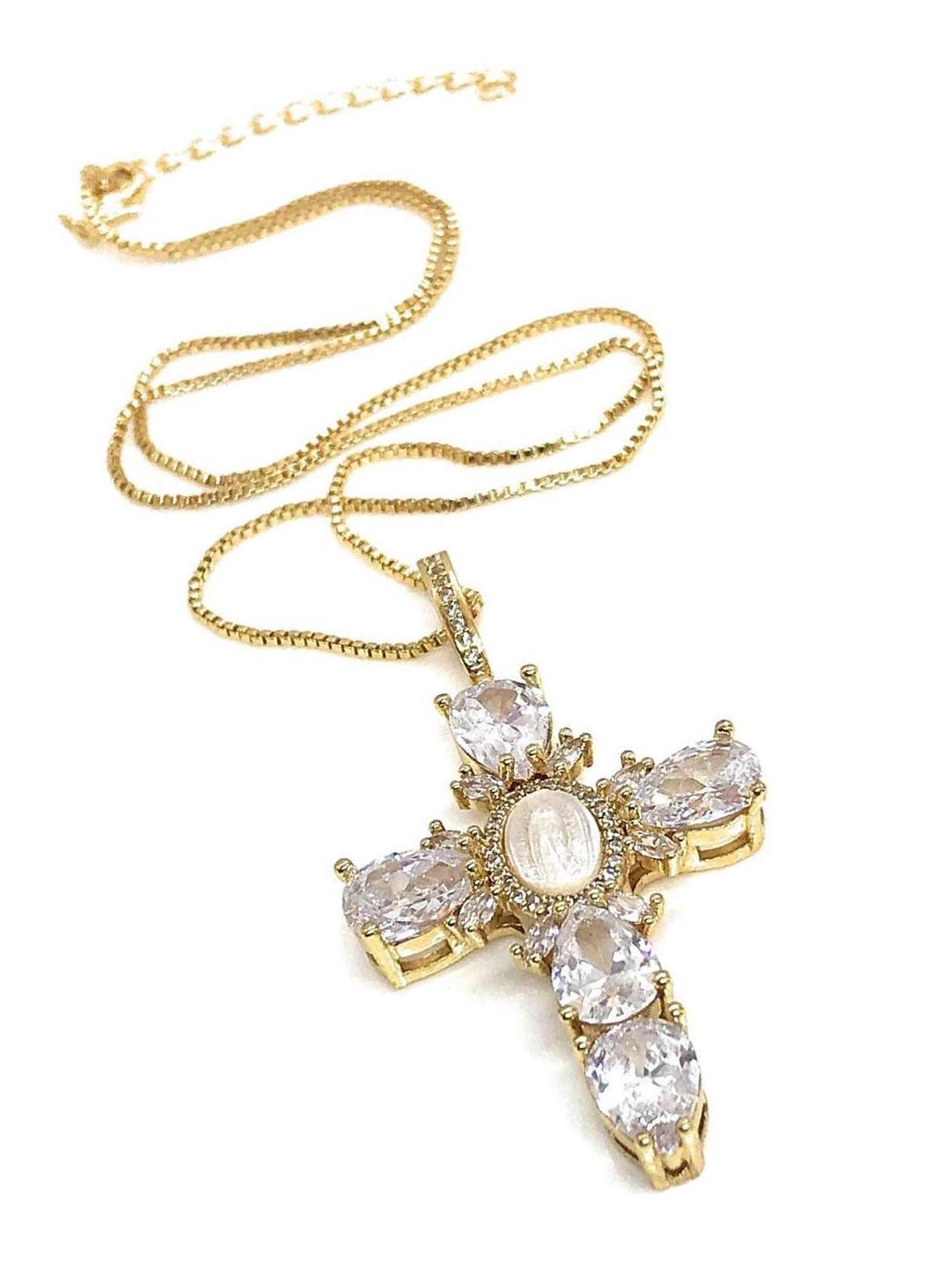 Cross Rhinestone Pendant Necklace Our Lady of and similar items