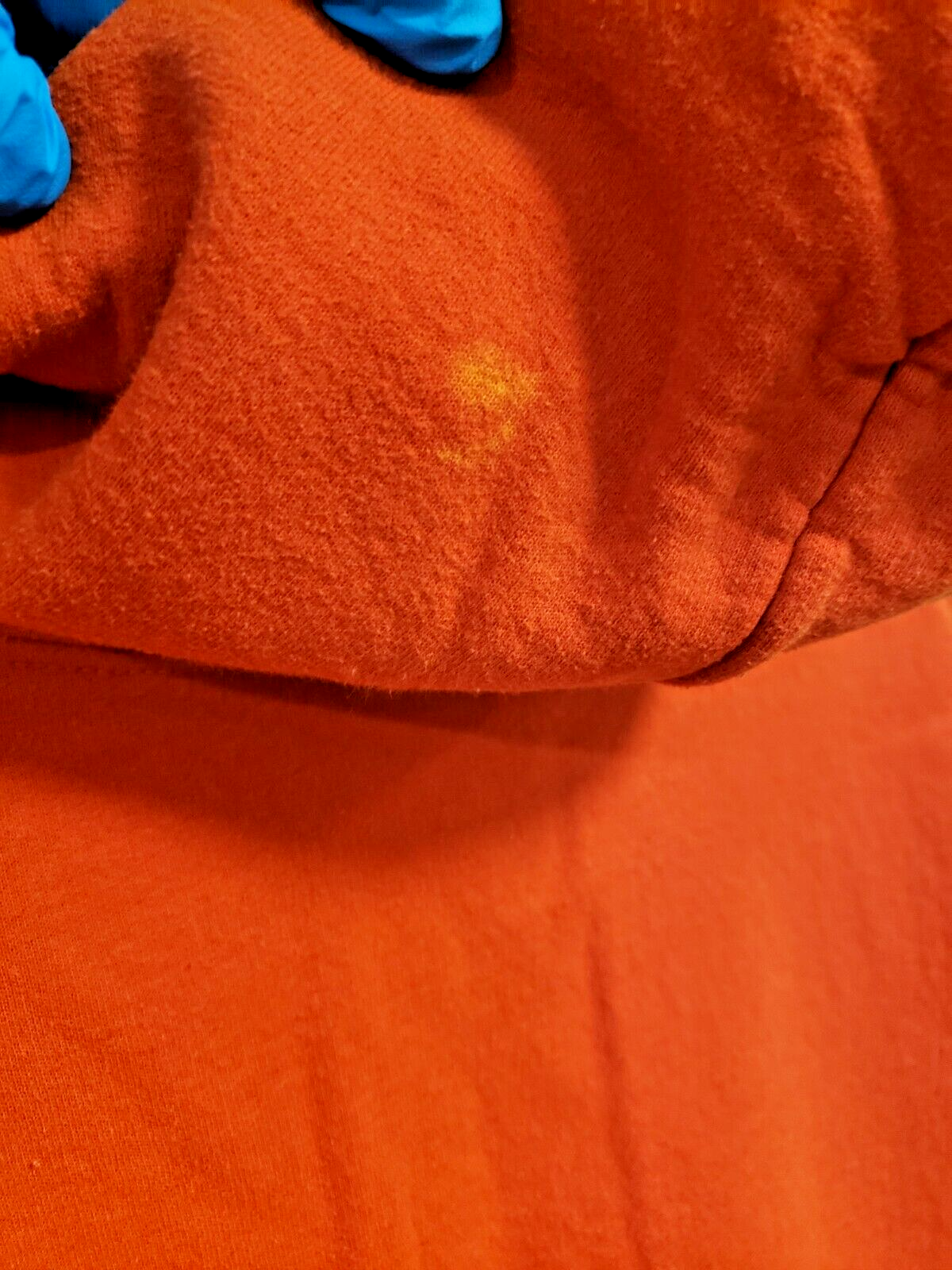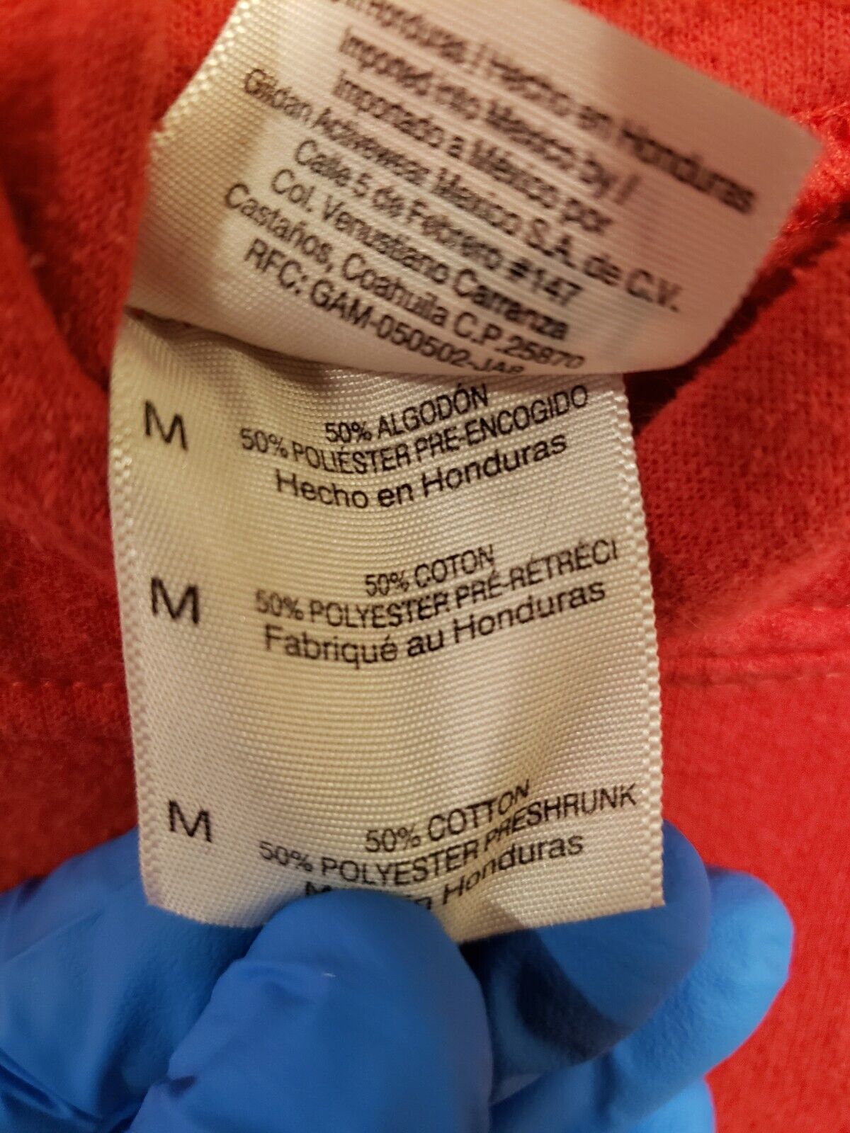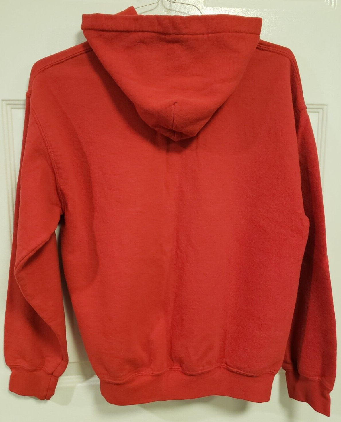 Overall good condition. Hood is missing draw string. Printed logo has expected and light cracking from use, but is in good condition overall. See last pic for bleach spot on back of hood. Other than what's mentioned, we have found no other: defects, holes, tears, stains, odors, pulled threads, etc.