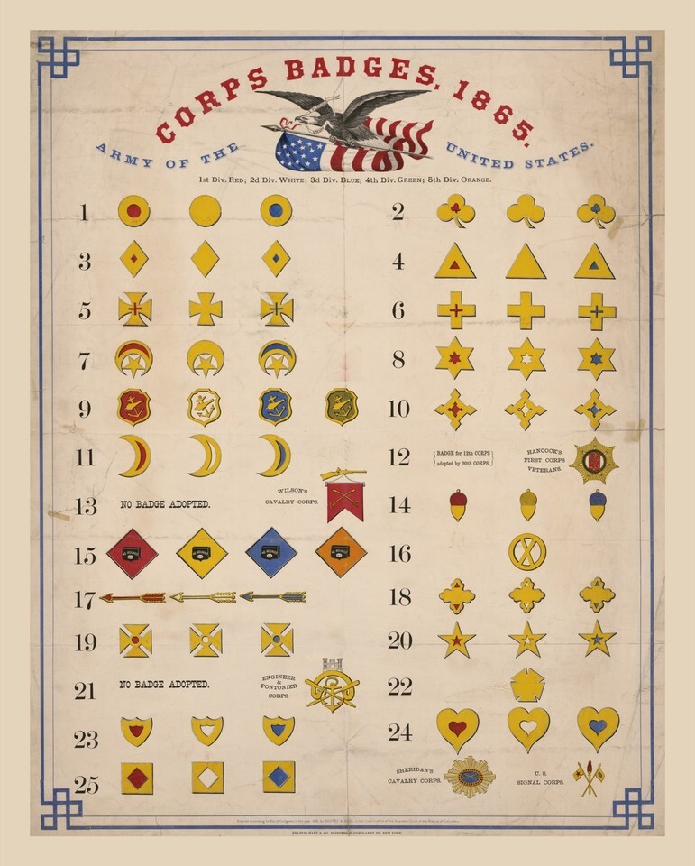9701.Decoration Poster.Room Wall art.Home decor.1865 American Army badges.Corps