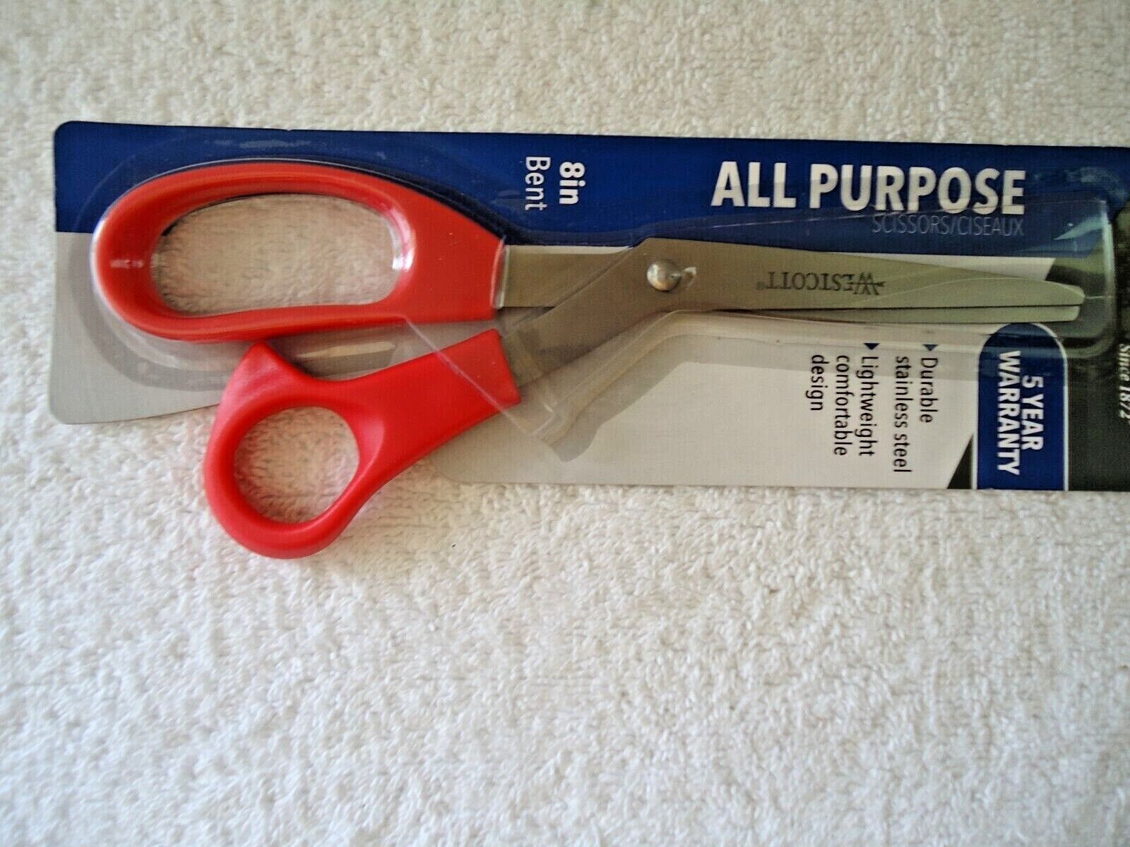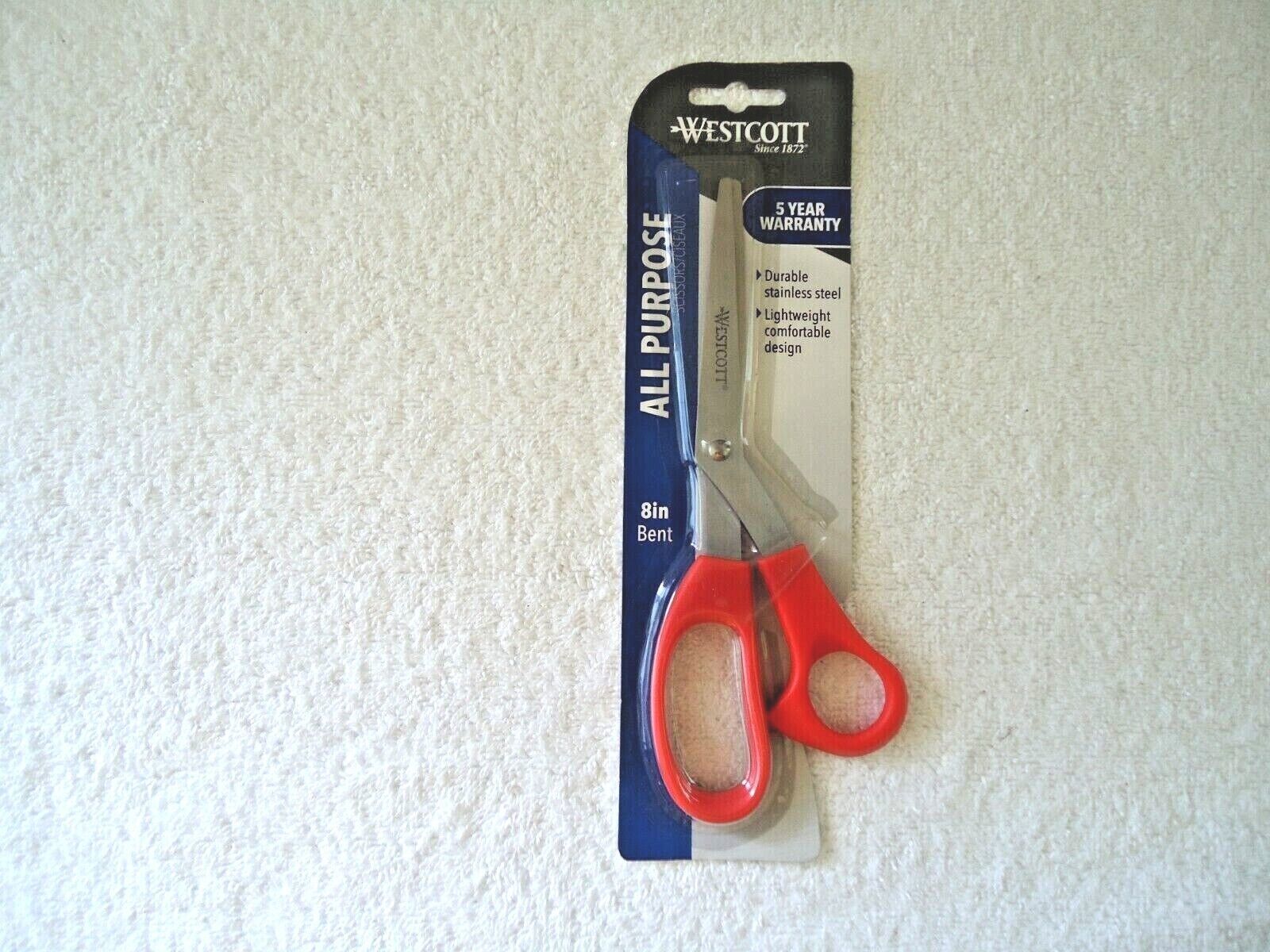 Here is a pair of " NIP " Westcott All Purpose 8 in.Bent Scissors " GREAT ITEM ".If you have any concerns or questions about this item(s) please ask before bidding / purchasing because this item(s) is being SOLD AS IS.Thank You.-(PC115)