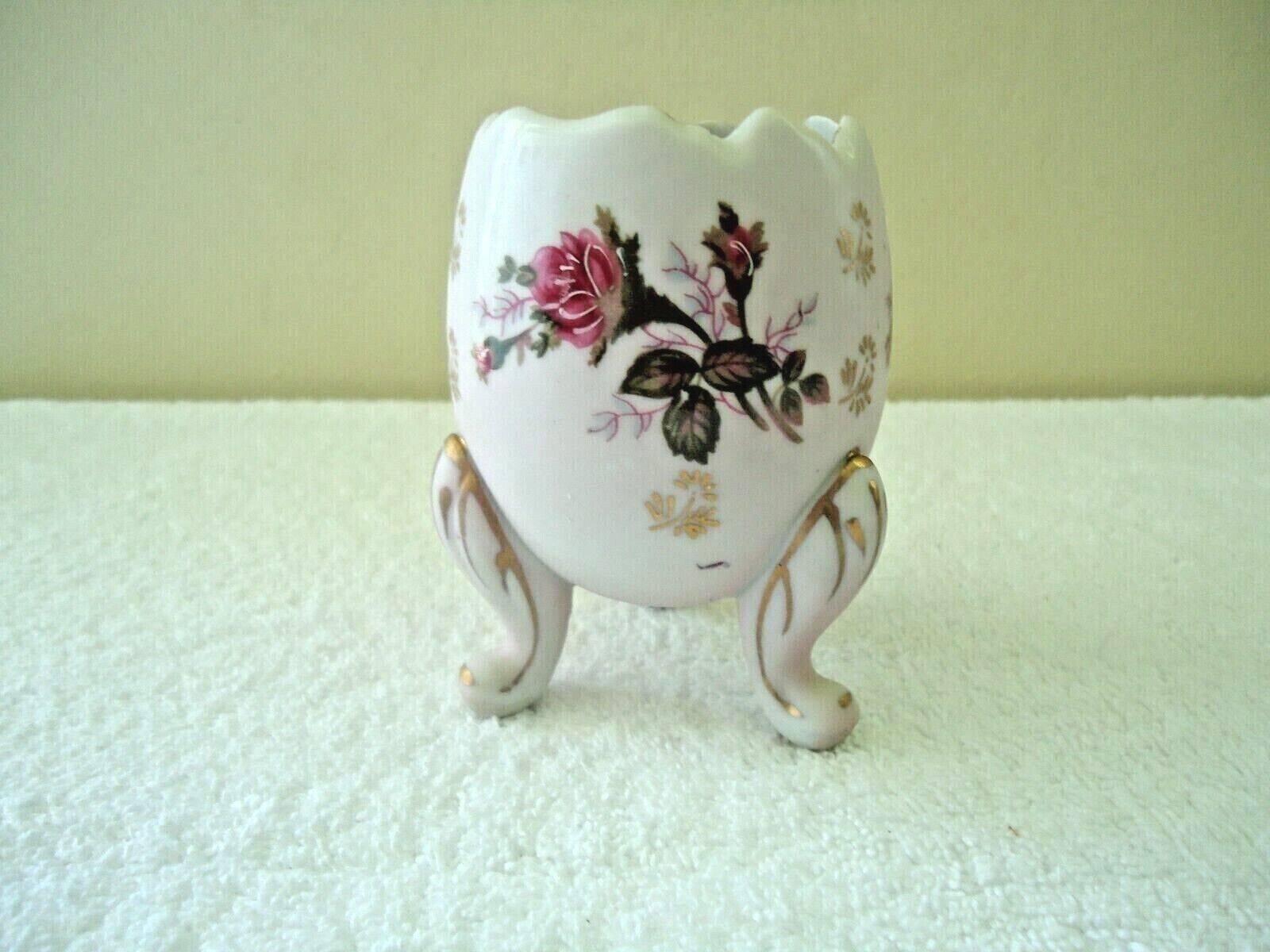 Vintage SRG Pinkish White Floral Themed 3 Legged Egg Cup " BEAUTIFUL COLLECTIBLE