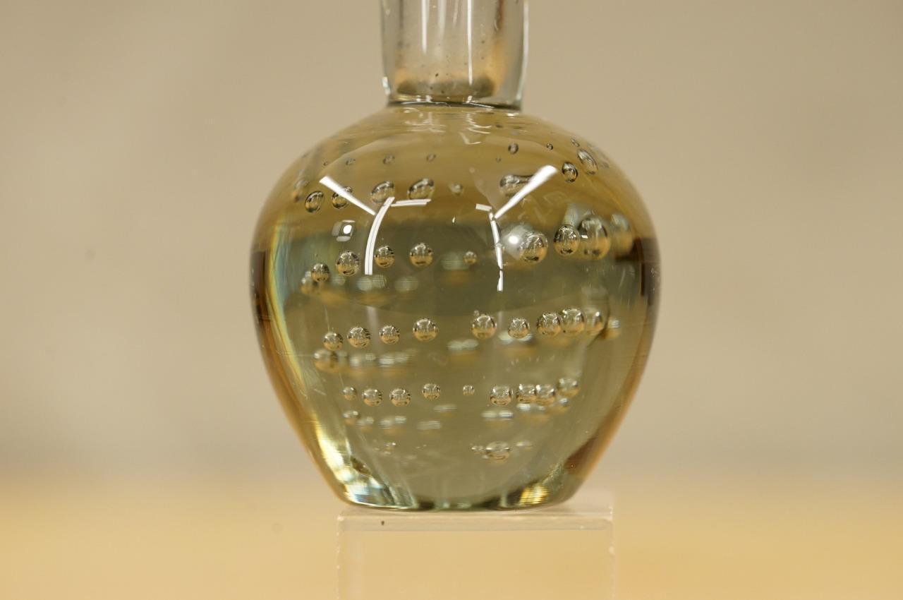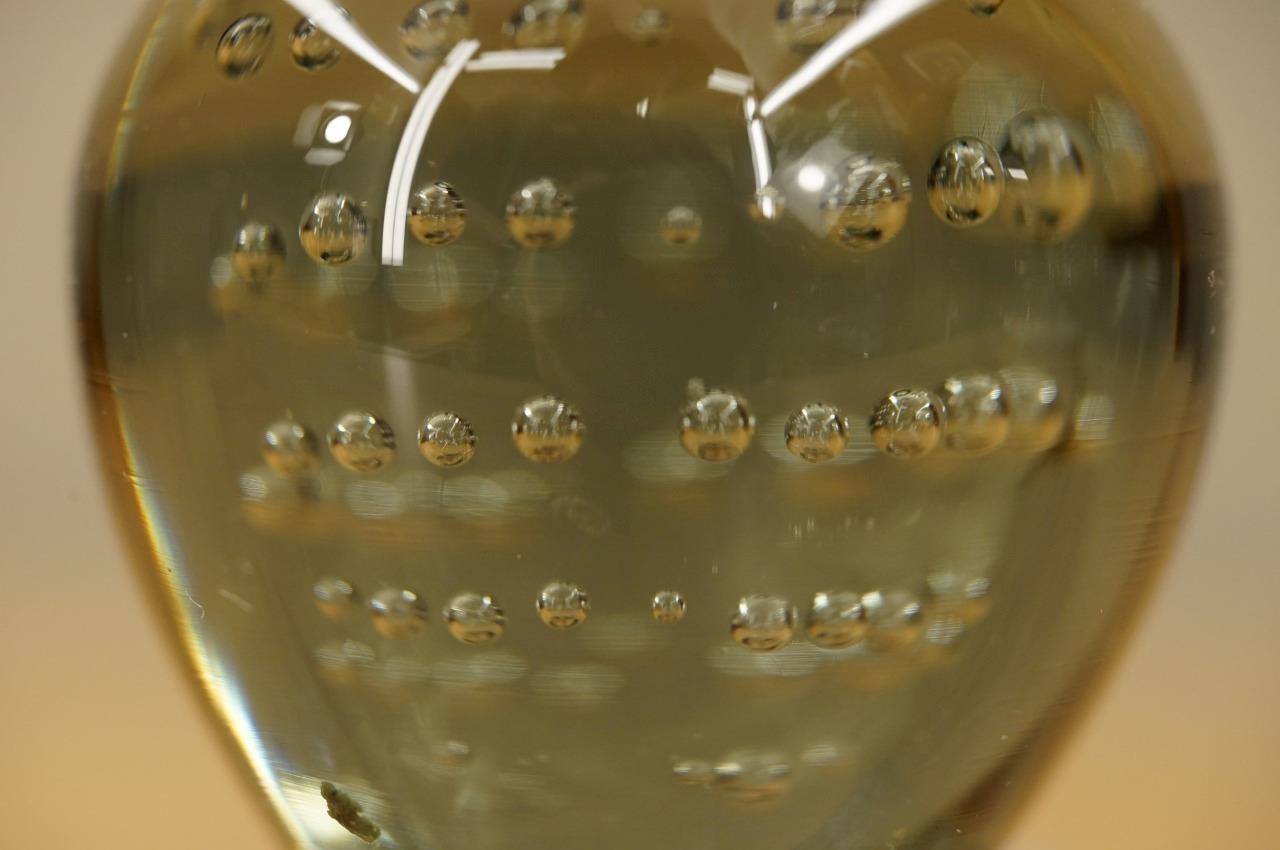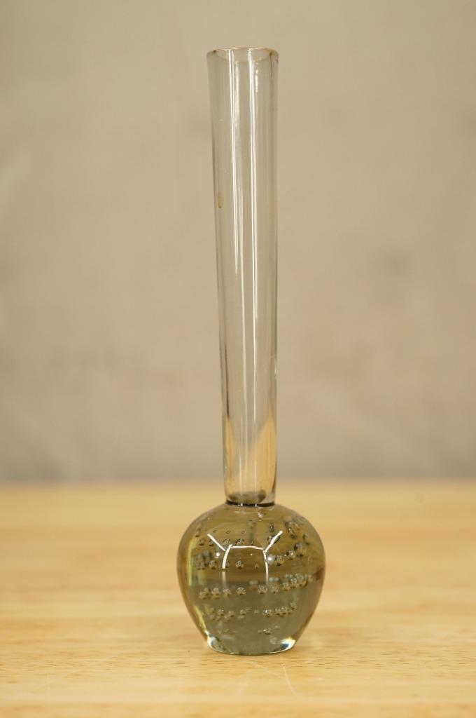 Vintage Art Glass MCM Mid Century Modern Smoke Gray Controlled Bubble Bud Vase. Weight paperweight style base. Total height is 6-1/8" tall. No chips or cracks. No smoke or pet odors. Nicely finished base. Hand pulled top.
