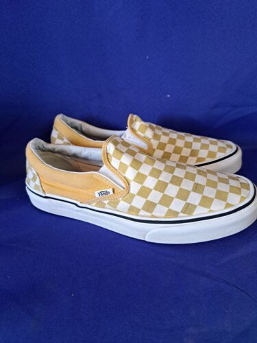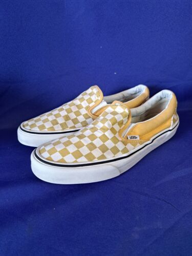 Vans Slip On Checkerboard Yellow Ochre Us Men's 9 Retro Low Top Skate Sneakers.