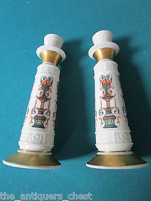 Lenox Lido pattern pair of candle holders, 8 1/2" tall, very good condition, some light surface scratches commensurate with age [56BSKTFRONTRACK4]