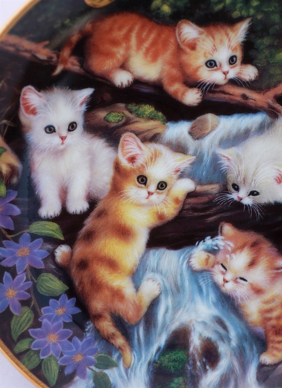 Timeless Tails Purr-petual Calendar July At Little Waterfall Decorative Plate