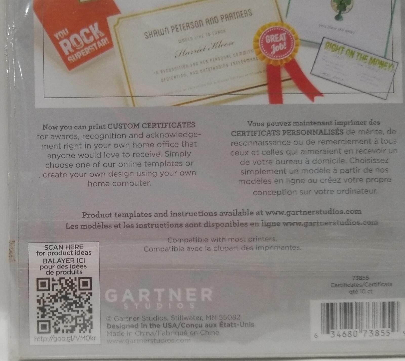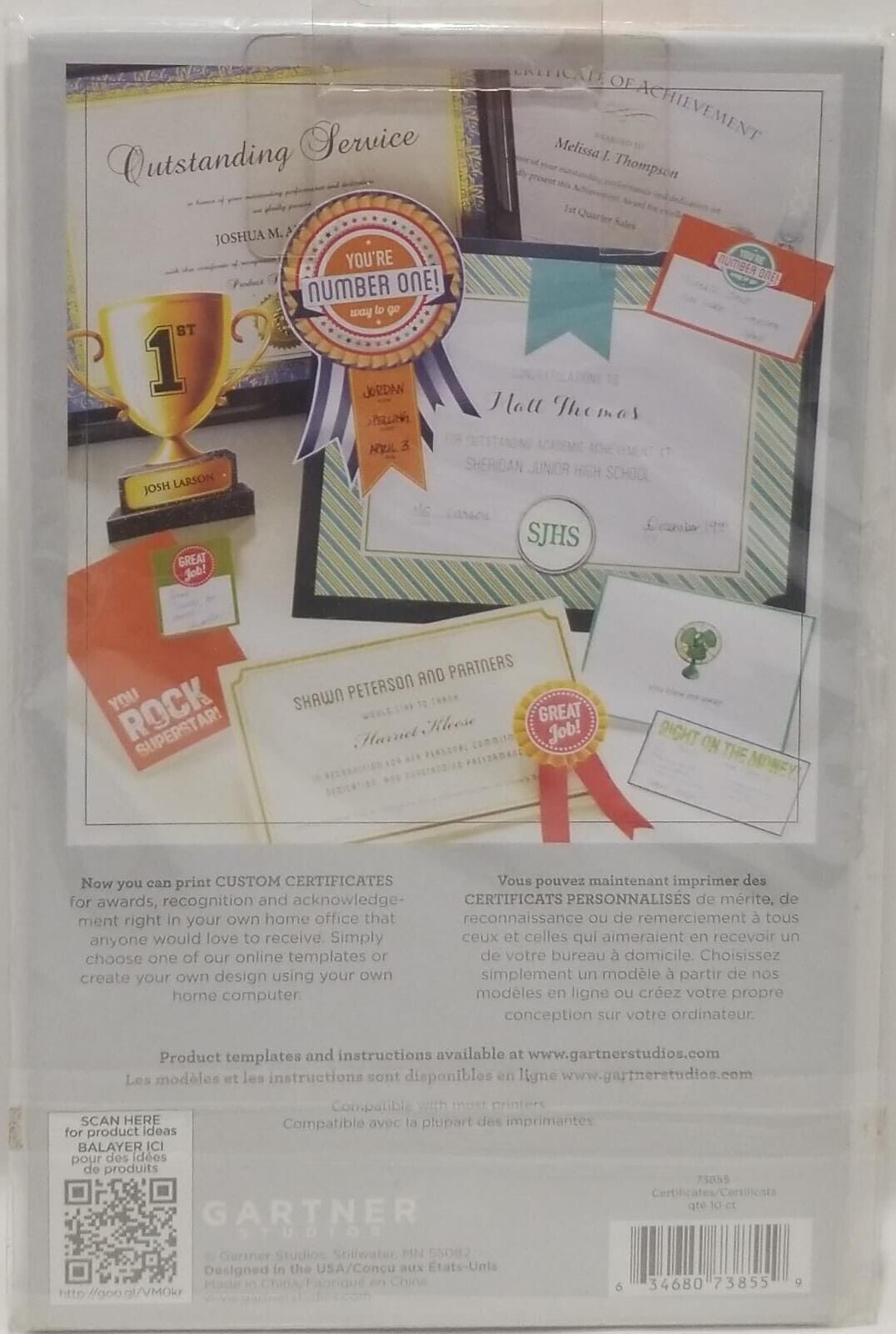 Gartner Studios Blue Plaid Print At Home Excellence Certificates, 10 Count